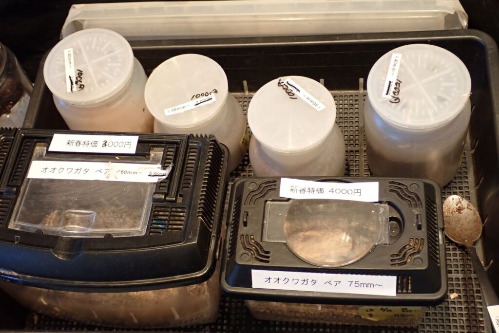 生きているオオカブト、クワガタなどを展示してます