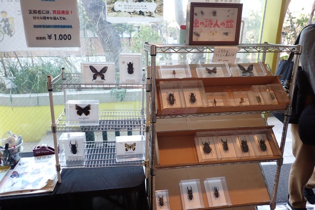 館内には上記以外の生き虫や標本も展示しています