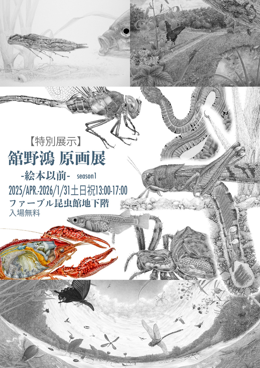 特別展示 – 舘野鴻 原画展 – 2025.06.28 2025.10.24 「舘野鴻 原画展 ― 絵本以前Ⅰ/ season1」 地下1階の回廊にて、舘野 鴻(たての ひろし)さんの原画展を開催しています。現在は絵本製作以前の作品(第一部)を展示中です。 ※ 第二部以降の展示も予定しています 記事のタイトルとURLをコピーする